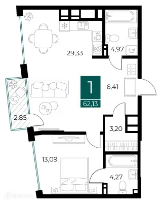 1 комн. квартира в Рязани в ипотеку от 28 475 руб/месяц