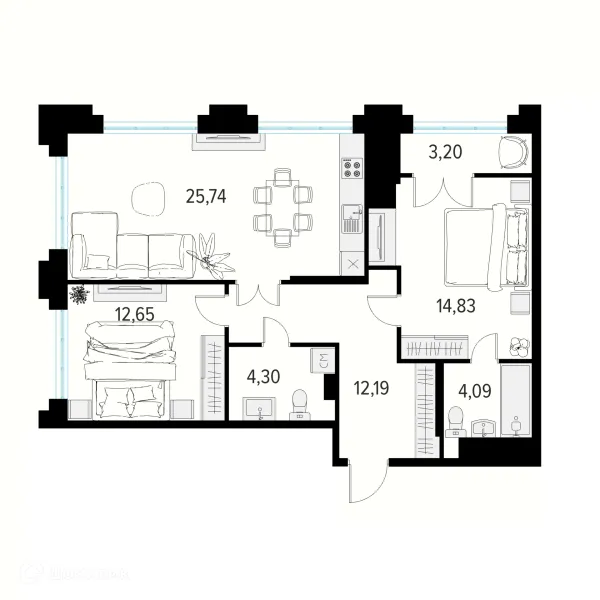 2 комн. квартира в Рязани в ипотеку от 45 253 руб/месяц