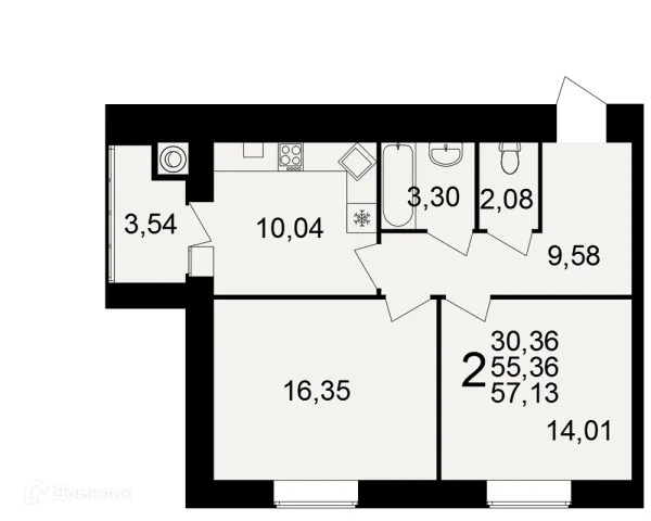 2 комн. квартира в Рязани в ипотеку от 57 906 руб/месяц
