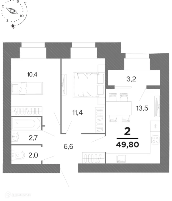 2 комн. квартира в Рязани в ипотеку от 57 915 руб/месяц