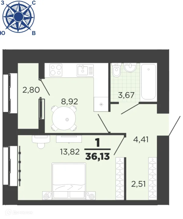 1 комн. квартира в Рязани в ипотеку от 35 611 руб/месяц