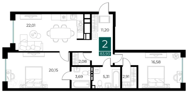 2 комн. квартира в Рязани в ипотеку от 91 504 руб/месяц