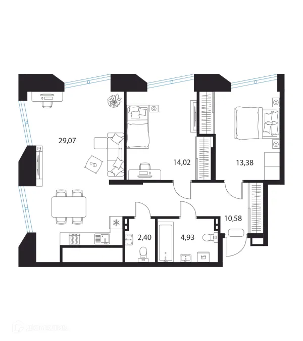 2 комн. квартира в Рязани в ипотеку от 93 731 руб/месяц