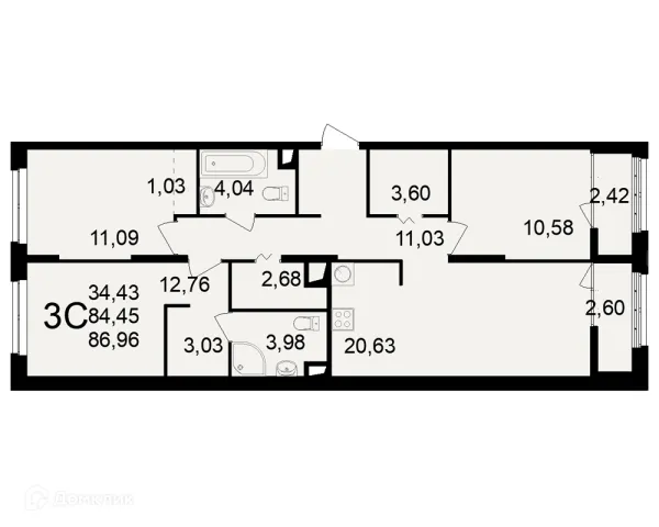 3 комн. квартира в Рязани в ипотеку от 68 169 руб/месяц