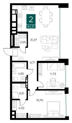 2 комн. квартира в Рязани в ипотеку от 93 731 руб/месяц