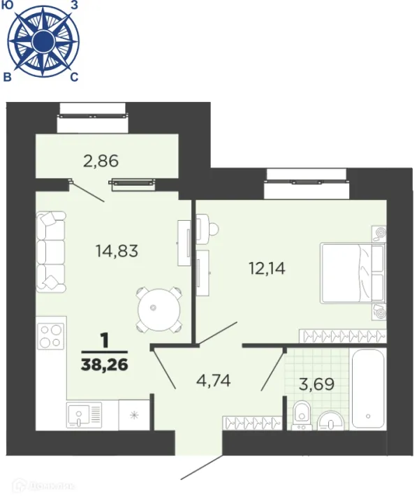 1 комн. квартира в Рязани в ипотеку от 37 996 руб/месяц