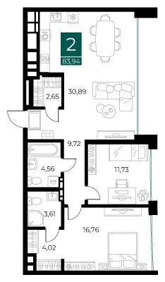 2 комн. квартира в Рязани в ипотеку от 104 570 руб/месяц