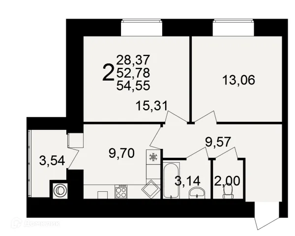 2 комн. квартира в Рязани в ипотеку от 54 128 руб/месяц
