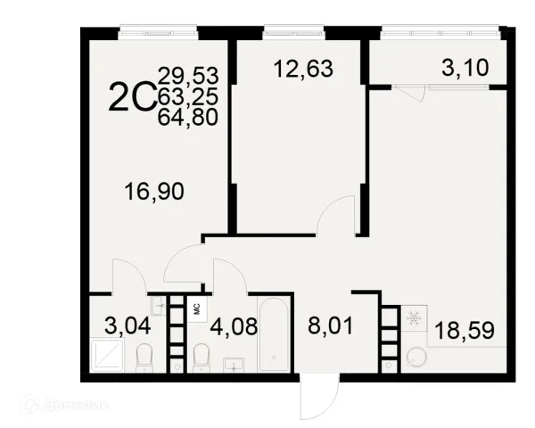 2 комн. квартира в Рязани в ипотеку от 43 209 руб/месяц