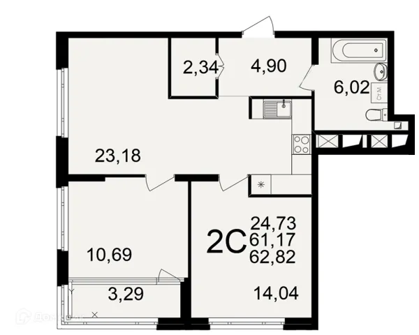 2 комн. квартира в Рязани в ипотеку от 62 426 руб/месяц