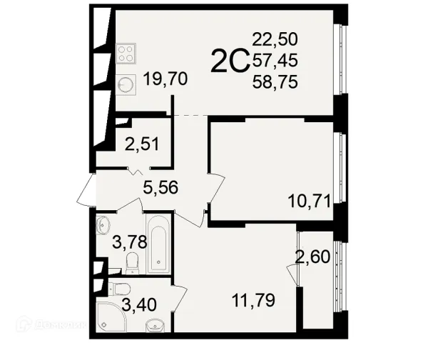 2 комн. квартира в Рязани в ипотеку от 54 718 руб/месяц