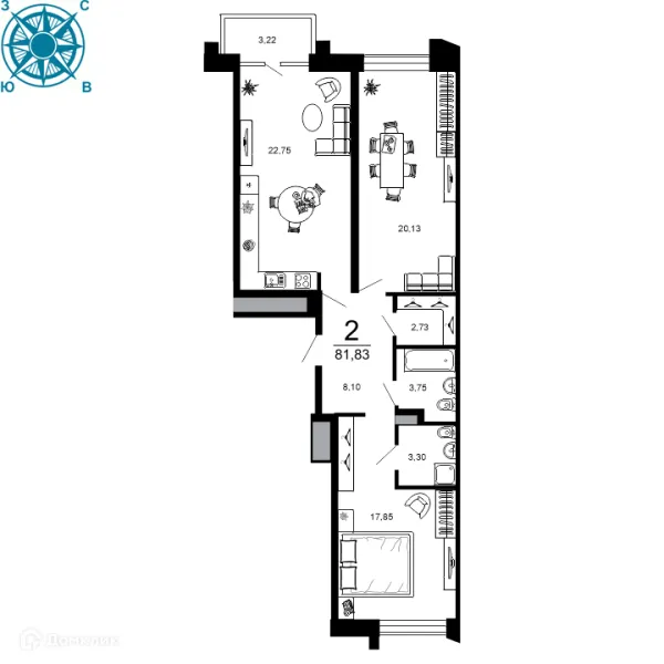 2 комн. квартира в Рязани в ипотеку от 73 526 руб/месяц