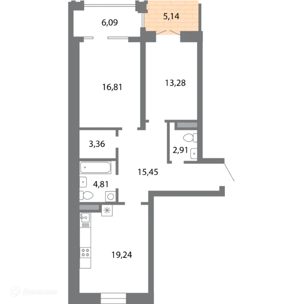 2 комн. квартира в Рязани в ипотеку от 90 873 руб/месяц