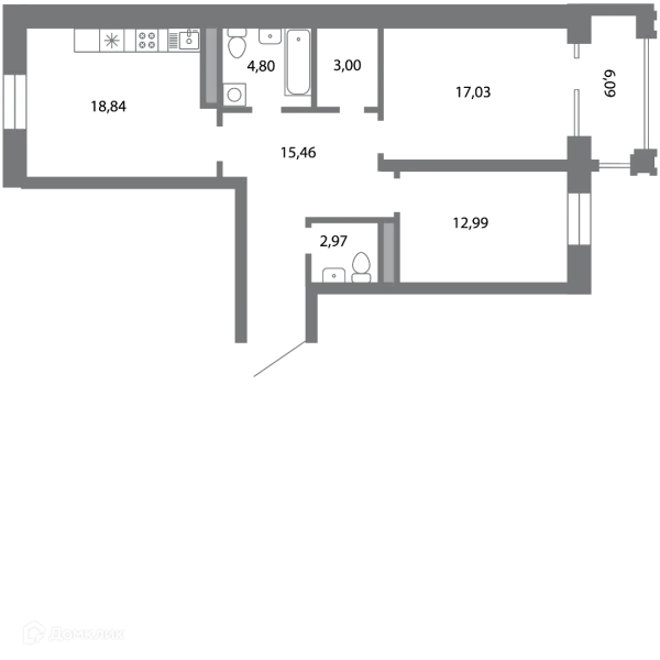 2 комн. квартира в Рязани в ипотеку от 92 981 руб/месяц