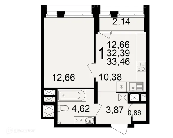 1 комн. квартира в Рязани в ипотеку от 45 739 руб/месяц