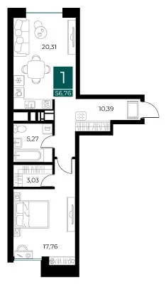 1 комн. квартира в Рязани в ипотеку от 56 400 руб/месяц