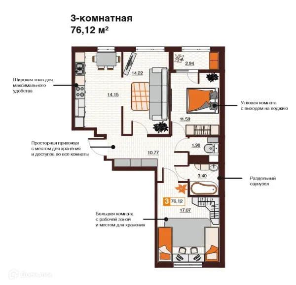 3 комн. квартира в Оренбурге в ипотеку от 63 671 руб/месяц