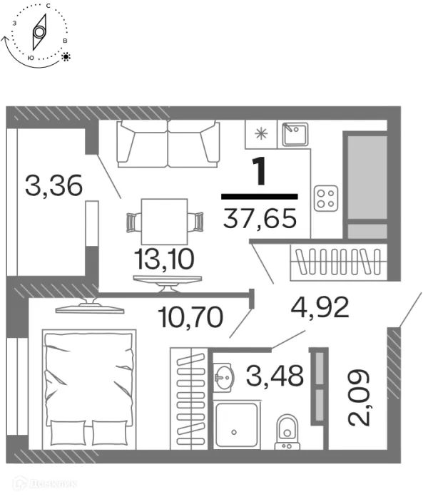 1 комн. квартира в Рязани в ипотеку от 39 057 руб/месяц
