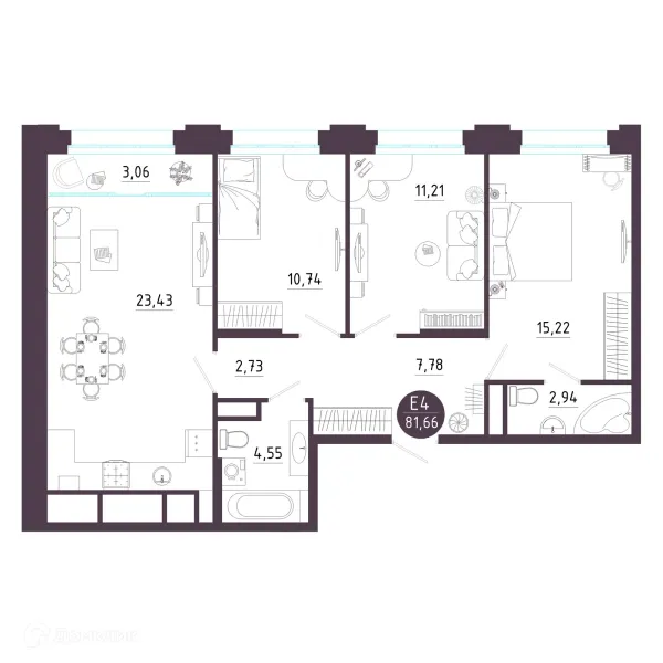 3 комн. квартира в Рязани в ипотеку от 73 486 руб/месяц