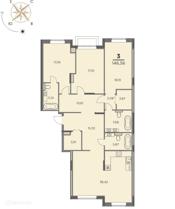 3 комн. квартира в Рязани в ипотеку от 328 795 руб/месяц