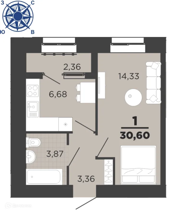 1 комн. квартира в Рязани в ипотеку от 50 220 руб/месяц
