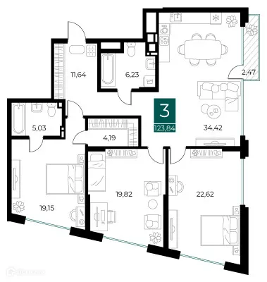 3 комн. квартира в Рязани в ипотеку от 190 570 руб/месяц