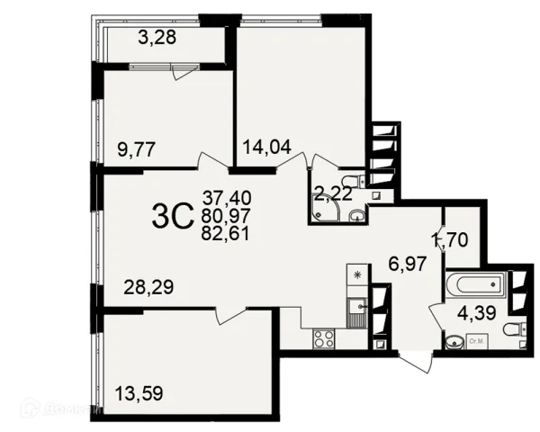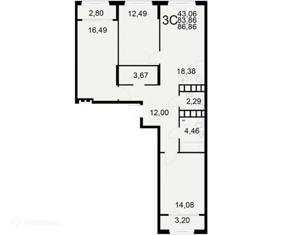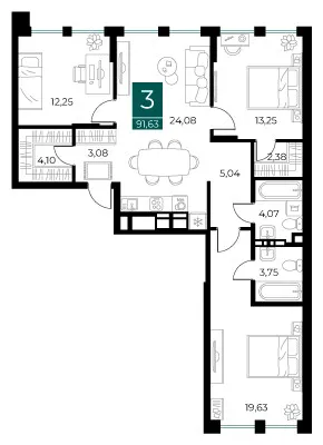 3 комн. квартира в Рязани в ипотеку от 79 713 руб/месяц