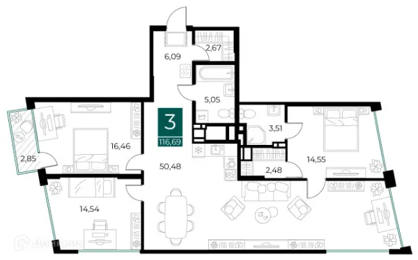 3 комн. квартира в Рязани в ипотеку от 165 423 руб/месяц