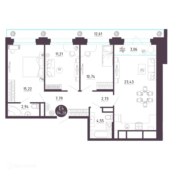 3 комн. квартира в Рязани в ипотеку от 67 433 руб/месяц