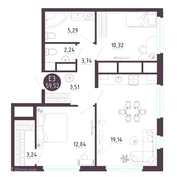 3 комн. квартира в Рязани в ипотеку от 66 132 руб/месяц